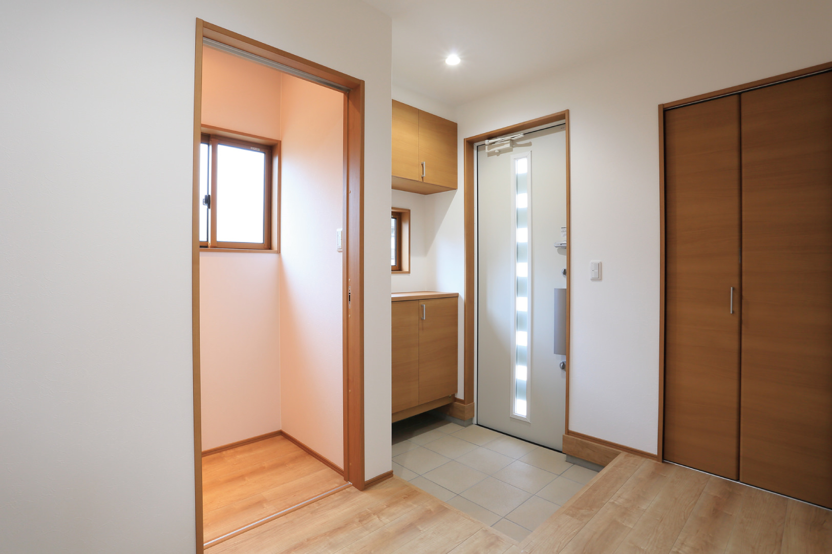 片開きタイプの左右どちらか、もしくはその両方にはめごろし窓がついているタイプです。採光性が高いため玄関スペースが非常に明るくなるメリットがあります。