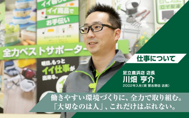 店舗に関わる「ヒト・モノ・カネ」のすべての管理を担い、店舗経営の大きな方向性を決めて実行するのが店長の役割です。店舗の健全な経営の土台となるのは、何といっても売上と経費のバランス。良好なバランスを安定的に維持するために、最大限の注意を払いながら、責任を担い、店舗全体を動かすことができるのが店長の仕事の醍醐味ですね。しかし、いくら店長の能力が優れていてもできる範囲は限られます。副店長、部門長、リーダー、リビングスタッフといった大勢のスタッフの協力を得られなければ、店長としての仕事を全うすることはできません。ですから、「ヒト」を大事にするのは当然のことです。どうすれば働きやすい環境がつくれるのか、気持ちよく仕事ができる風土をいかに醸成するか。このことに全力を注いでいると言っても過言ではありません。