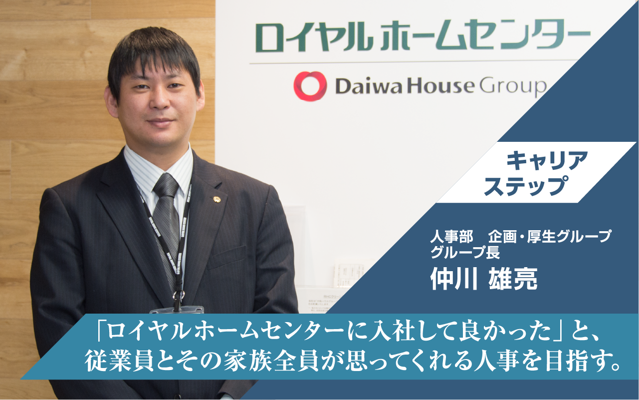 小売りの醍醐味に魅せられロイヤルホームセンターに入社したので、一度は店長としてヒト・モノ・カネを随意に動かしてみたい気持ちはあります。しかし今は人事の仕事に邁進したいと思っています。現在、ロイヤルホームセンターはリビングスタッフさんを入れてすでに5,000人を超えた規模になっています。人事といえば従業員だけを対象にした仕事だと思われがちです。しかし私自身、従業員とその家族全員が「ロイヤルホームセンターに入社して良かった」と思ってもらえる人事でありたいと念願しています。ロイヤルホームセンターはまだまだ発展途上。だからこそ人事としてやるべきことは無数といってもいいでしょう。チャレンジしがいのあるコト・モノもまた無数です。会社の発展とともに私も大きく成長していきたいと思っています。そのためにもアンテナを高くはり周囲の会話に耳を傾け、コミュニケーション能力をさらに磨き情報収集に努めるつもりです。